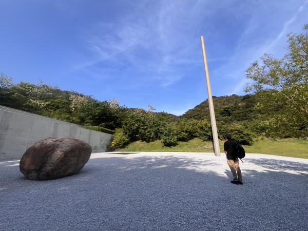 その次に訪れたのは2004年に完成した地中美術館を拝見するためです。駐車場横のチケットセンターでチケットを購入し道路の向こう側の坂を上っていくと入口があります。その名の通り建物は地中にあり全体像はわかりません。迷路のよ・・・